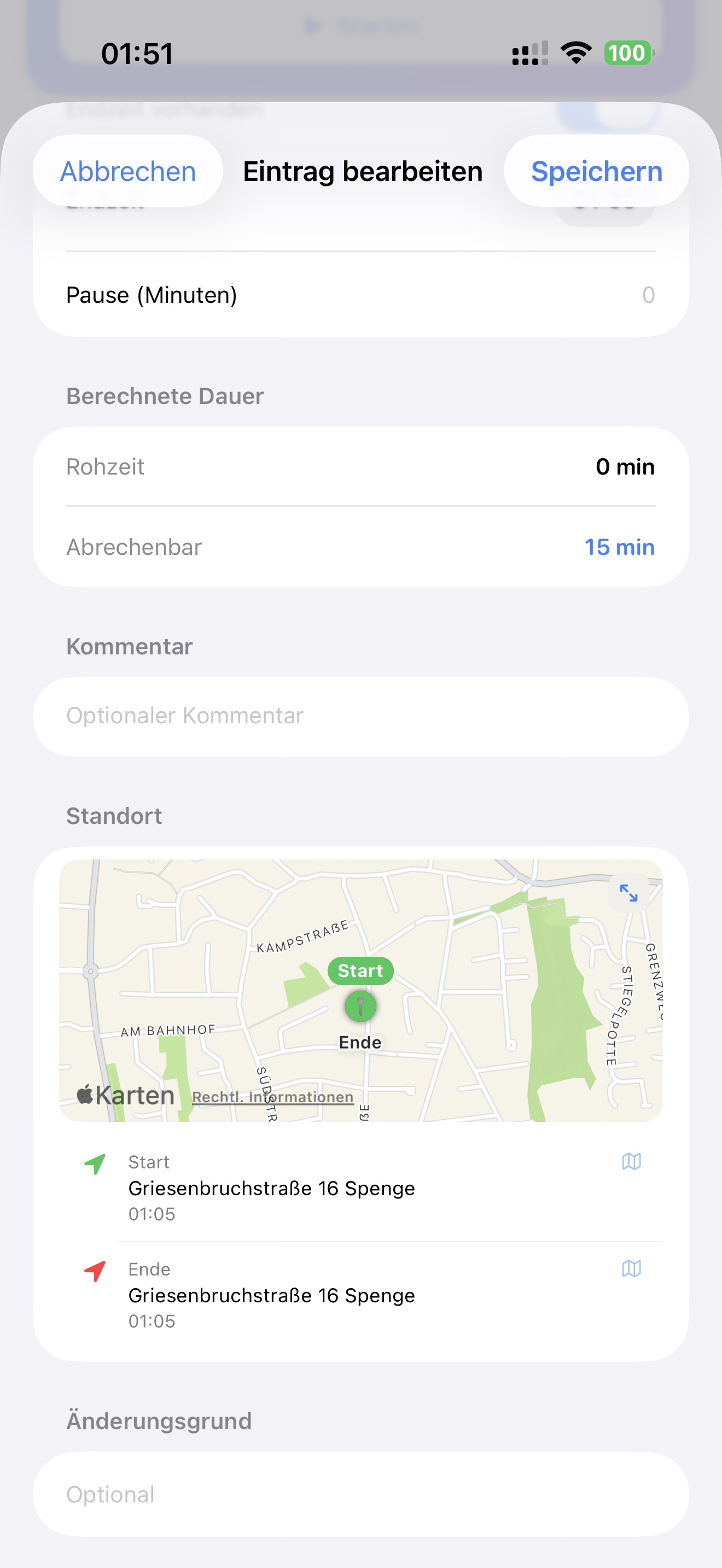 StandortdetailsStart- und Endort einer Buchung mit Karte, Adresse und Zeitstempel.